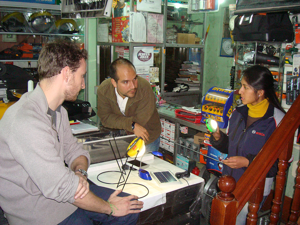 Photo: PowerMundo visiting points of sale with Angel Verastegui of GIZ-ENDEV.